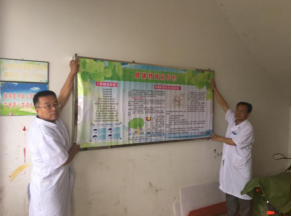 北環(huán)醫(yī)院張慶華副院長(zhǎng)和醫(yī)務(wù)科的牛曉寧主任一起將健康教育宣傳欄換成新制作的,內(nèi)容有“愛(ài)眼健康歌”、“正確做眼保健操”、“中暑的急救方法”等。